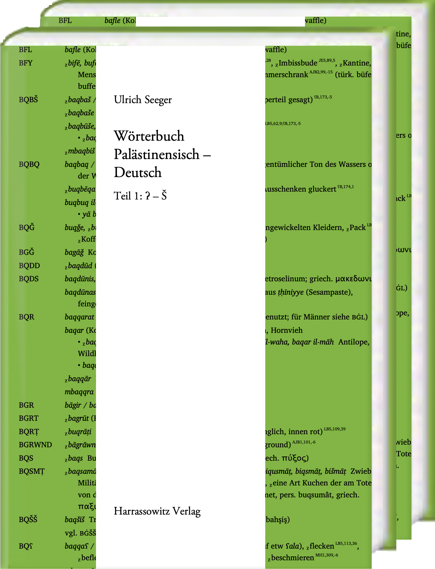 Für den arabischen Dialekt Syriens gibt es bereits ein umfassendes französisches Wörterbuch von Adrien Barthélemy. Das Ägyptisch-Arabische ist erschlossen durch das ausführliche englische Wörterbuch von Martin Hinds und El-Said Badawi. Nun hat auch der deutsche Sprachraum ein eigenes enzyklopädisches Wörterbuch für einen arabischen Dialektraum, und zwar für das Palästinensisch-Arabische. Ich habe in zwei Aufenthalten von jeweils einem Jahr in der Nähe von Ramallah selbst und mit Helfern Wortschatz aus ganz Palästina gesammelt. Danach habe ich die gesamte dialektologische Literatur über Palästina mehr als sieben Jahre lang systematisch durchsucht und alle Wörter, die in meiner Sammlung fehlten, mit genauen Quellenangaben ergänzt. Über 57.000 Zitate wurden dabei eingearbeitet. In insgesamt fast zehnjähriger Arbeit entstanden so die beiden großformatigen Bände mit zusammengenommen ca. 1.350 Seiten Umfang. Das Werk ist nach arabischen Wurzeln geordnet und enthält mehr als 9.000 Wurzeln mit über 30.000 Einträgen. Dazu kommen noch etwa 11.000 Beispiele und Zusammensetzungen. Damit ist es eines der umfangreichsten arabischen Wörterbücher in eine europäischen Sprache.
